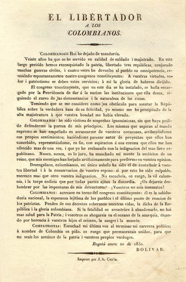 El Libertador a los colombianos