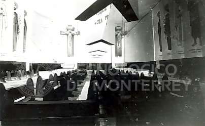 Fondo D-Tapia Méndez Seminario interior 1 | 2 | 3 | 4 Interior de la capilla del Seminario Menor de Monterrey (1955) Interior de la capilla del Seminario Menor de Monterrey (1955) Interior de la capilla del Seminario Menor de Monterrey (1955) Interior de la capilla del Seminario Menor de Monterrey (1955) Capilla del Seminario Menor de Monterrey. (1955) Capilla del Seminario Menor (1955) Casilleros en el Seminario de Monterrey (1955) Comedor del Seminario Menor (1955) Pasillos del Seminario (1955) Dormitorios en el Seminario Menor (1955) Interior de la capilla del Seminario Menor (1955) Seminaristas en las escaleras del Seminario (1955) Salón de estudio del Seminario de Monterrey (1959) Salón de clases con pizarrón en el Seminario de Monterrey (1959) La cocina del Seminario de Monterrey (1959) Salón con pupitres en el Seminario de Monterrey (1959) Lavamanos en el Seminario de Monterrey (1959) Pasillo del Seminario de Monterrey (1959) Seminaristas en capilla del Seminario Menor (1959) Capilla del Seminario Menor (1955) Volver al índice